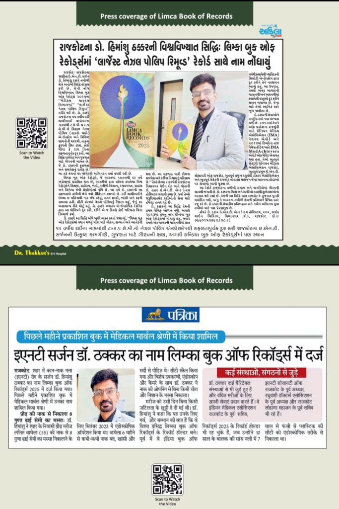 In 2007, Dr. Thakkar founded his private hospital in Rajkot, Gujarat, which has since grown into a trusted center for advanced ENT care. The hospital specializes in a wide range of procedures, including tympanoplasty, mastoidectomy, thyroidectomy, sinus surgeries, and head and neck cancer treatments. It is also a hub for public health initiatives, including a “Quit Tobacco” campaign and free diagnostic camps for underprivileged communities.